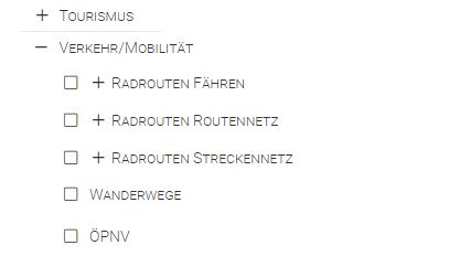 Durch Klick auf  oben links im Kartenfenster, werden die Kartenebenen angezeigt bzw. geschlossen.