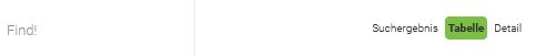Die Abbildung zeigt links den Eingabeschlitz der Suche und rechts die oben beschriebnen Funktionen zur Steuerung der Anzeige einer Ergebnisliste, der Tabelle und Detailansicht